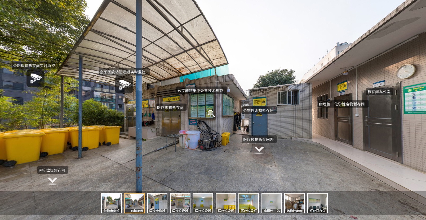 该局以固体废物暂存间如何规范为抓手,通过360°全景拍摄技术,对暂存间管理制度、规范化操作和设置要求进行VR全景展示平台制作。目前,已完成对医疗机构、污水处理厂、汽修企业等危险废物示范点VR图式拍摄,并通过PC端和手机端进行展示。更值得一提的是,该VR全景展示平台已集成到观山湖区生态环境网格化精准管理系统,并实现了危险废物示范点实时监控功能,成为执法部门在执法过程中的重要参考依据,为该局今后的执法监管和企业服务提供便利。