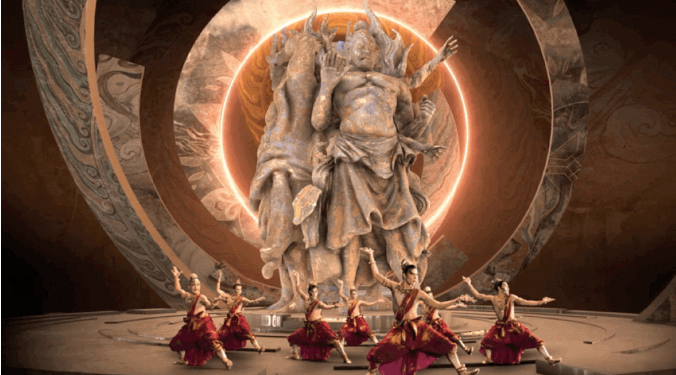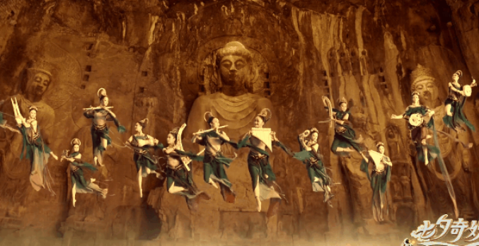 这次成为网红的《龙门金刚》,以河南地标之一龙门石窟为背景实景拍摄,取材自龙门石窟石刻的飞天和金刚,在大佛的注视下翩翩起舞。其中,甚少出现在公众面前的龙门金刚尤其让人印象深刻,相比飞天的轻盈,他们的舞姿更为庄重,不怒自威更显肃穆。刚柔并济的舞蹈片段融合了空中威亚、360度摄影及AR(现实增强技术),将古风舞蹈与龙门石窟的历史文化相融,创造了独一无二的视觉感受。