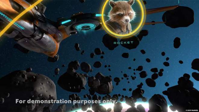 乘坐奥迪e-tron的乘客戴上VR头显,坐在后座上,他们会发现自己被送入由火箭浣熊驾驶的银河护卫队飞船。这种体验的独特之处在于,汽车的每一个动作都是实时复制的,所以如果汽车加速,船也会加速,如果汽车向左转弯,船就会绕过障碍物。