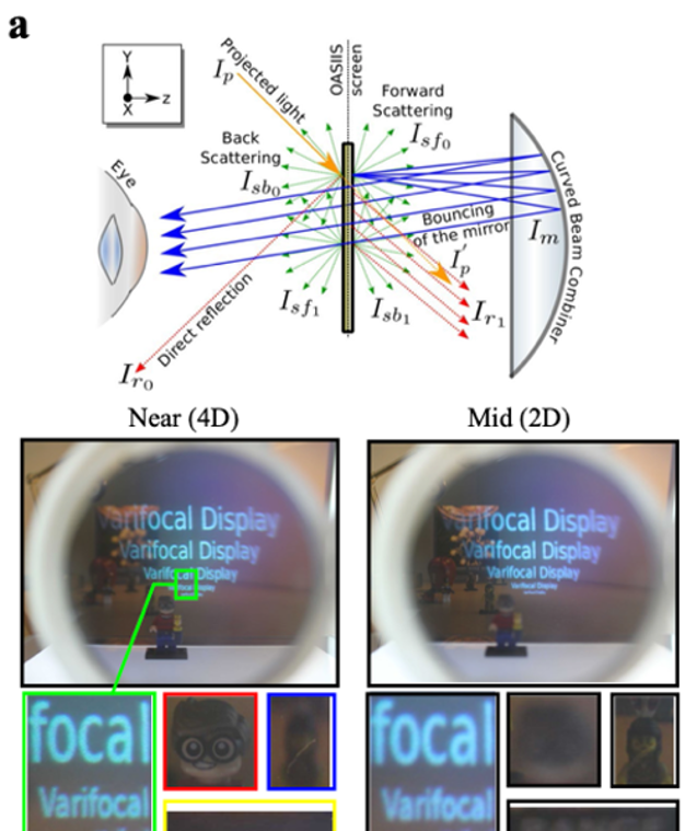 随机相位掩模放置在空间光调制器(SLM)的共轭平面上,从而将衍射角增加到空间带宽积(SBP)极限以上。增加的衍射角会扩大视场范围,从而向用户呈现更大的 3D 图像。